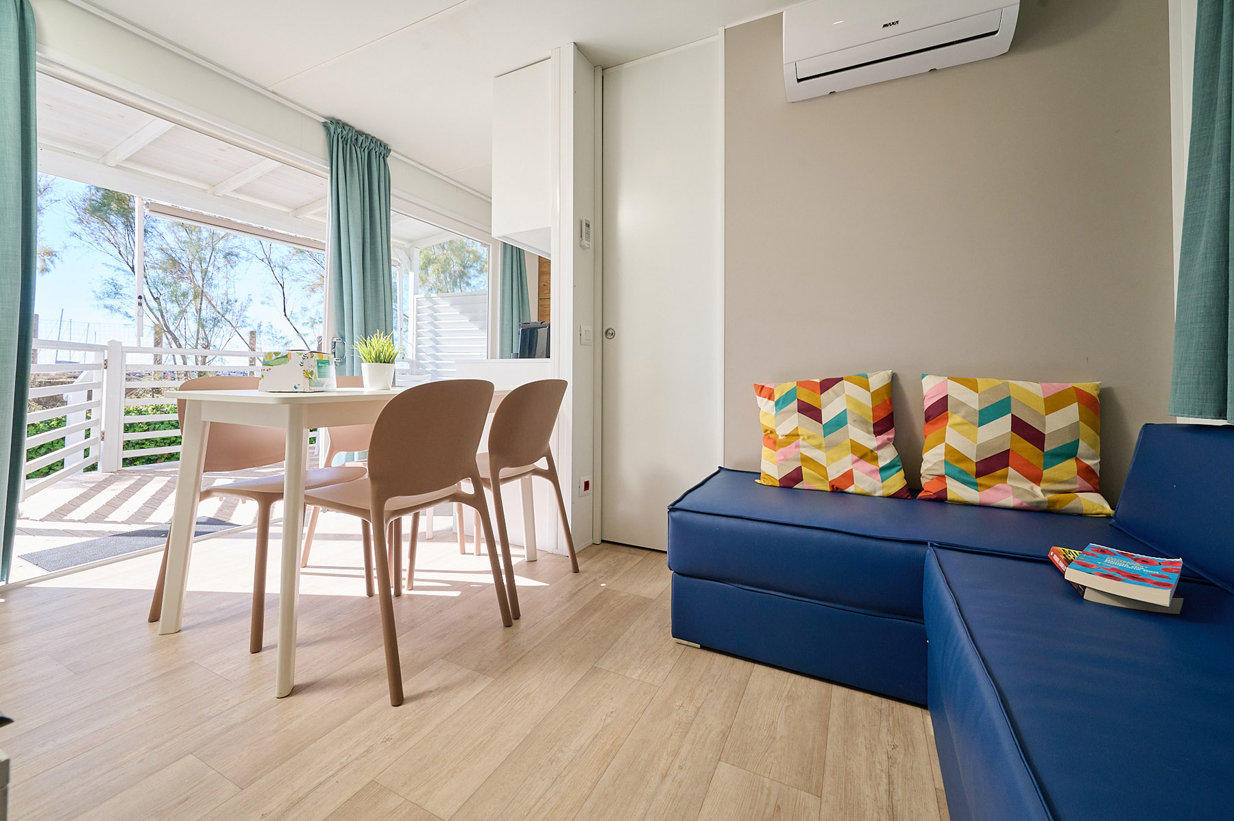Brand new and beachfront, the Elba Mobile Home enjoys a privileged location just a few steps from the beach and is an ideal choice for families or friends who want to experience a relaxing vacation with all the comforts of home and a unique sea view.